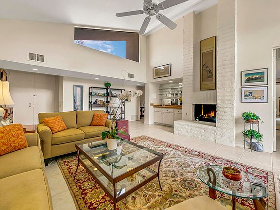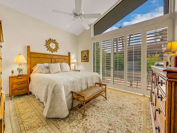 SHORT TERM RENTAL APPROVED! Rare opportunity to own a 3 bedroom 2 bath Villa in Shadow Mountain Resort. The HOME is walking distance to renowned El Paseo shopping and dining district. Upon entry, you're welcomed by an open-concept living with high vaulted ceiling, fireplace and fabulous windows, allowing natural light. Multiple outdoor patios. Kitchen features, stainless steel appliances, granite countertops, mahogany bar, and cherry wood custom cabinets that provide soft closing drawers and plenty of storage and pull out drawers. The spacious master bedroom is a peaceful retreat with its own private en-suite bathroom, complete with a tile shower. Tremendous closet space 2 additional well-appointed bedrooms share a second bathroom, providing ample space for family or guests. The outdoor living space is perfect for enjoying the beautiful Palm Desert weather, with a patio offering an ideal setting for entertaining or relaxing. The community offers resort-style amenities, including a large figure 8 pool, 5 hot bathtubs, and 16 tennis courts. Two on-site seasonal restaurants. Gated community offers the perfect blend of privacy and convenience. Overall, this exquisite Palm Desert Villa offers location, location, location, and a combination of tranquility, privacy and convenience that is sure to impress even the most discerning buyer. HOA covers landscaping, exterior painting, maintenance, window cleaning, earthquake policy, roof, hotel package cable Wi-Fi internet. Call today!