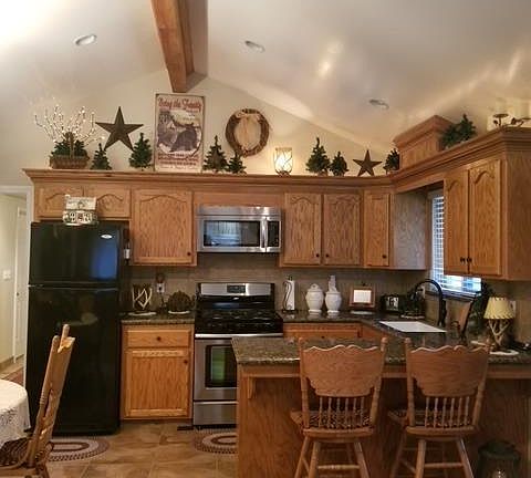 Wow! Check out this amazing cabin, Panorama Heights, Posey. Shows pride of ownership. Exterior river rock detail, stamped concrete walkways, decks/porch with all weather decking. Beautiful landscape. Approx 1.03 acres, 2 bedroom, 2 bath cabin has been remodeled, gorgeous master bedroom and bath, guest room and bath, kitchen with granite counters, custom wood cabinets, tile floor, lots of storage, breakfast bar, formal dining, 2 propane wood stoves. Lots of dual paned windows for natural light, cozy living room, carpet, what's more, a beautiful outdoor kitchen, granite counters & bar, stainless appliances, built in BBQ, hot water, lighting, perfect for entertaining. One car garage, W/D hook ups. Storage building for all your toys! So much to offer, this is a must see--don't miss out!
