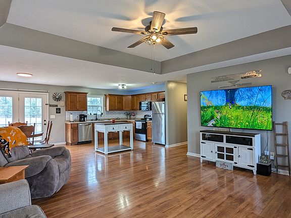 This property is a true oasis with country views and breathtaking sunrise and sunsets. A beautiful One Level Home features an open concept - the living room and dining room flows seamlessly into a well-equipped kitchen with ample counter space. Kitchen has hardwood cabinets, tile backsplash, large pantry & New appliances. Home includes 3 bedrooms, 2 full baths, utility room and extra closet space. Large Primary Bedroom with separate His & Her walk-in closets - Lg Primary bathroom w/ plenty cabinets! Take a stroll Outside onto a large deep spacious yard, detached garage (workshop) 30x40, concrete pad for camper. Imagine enjoying summer evenings on the spacious deck overlooking the large beautiful yard. This home is perfect for hosting spring barbecues and outdoor gatherings. It is the perfect time to make your move!