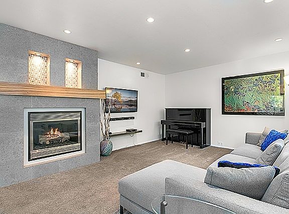 VR $499,000 to $515,000 Bright and modern, this stunning gem has been updated throughout and features high efficiency windows, smooth ceilings, and recessed lighting. Family room offers cozy fireplace with floor to ceiling decorative surround. Kitchen boasts light maple cabinets, granite slab counters with full height splash, eat at bar, built-in microwave, pantry, and smooth cooktop. Laundry room with additional storage is located off the kitchen. Upstairs, both bedrooms feature ceiling fans and mirrored wall to wall closets, and the shared bath offers natural stone finishes and jetted tub. Enjoy entertaining in your private backyard surrounded by lush tropical landscaping. This spacious townhome is just steps from the lagoon and ocean views. Access to fishing, jet skiing, kayaking and access to private boat launch and beach. Boat access with card obtained through City. Welcome home!
