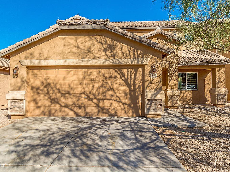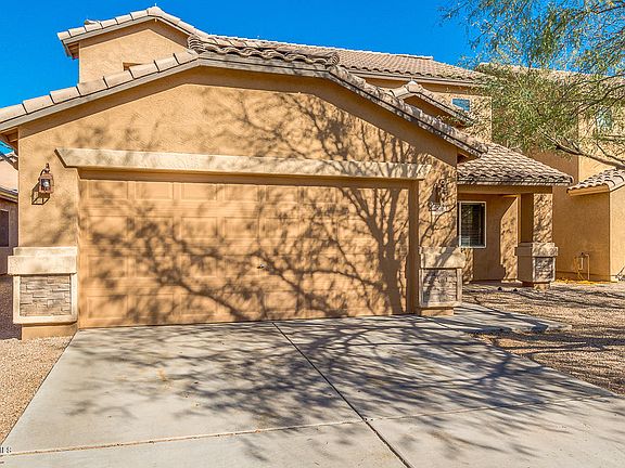 Incredible opportunity in Queen Creek! Full bath & bedroom downstairs. Curb appeal, stone accents on the facade, and gravel front landscaping. Upgraded interior is complete with 5 bed, 3 bath, big floor plan with natural light, luxurious pendant lighting, living/dining area, and neutral color palette. Well maintained eat-in kitchen has everything you need; black matching newer appliances, sliding-door pantry, centered island, recessed lighting, and honey oak cabinetry. Master suite includes a spotless full bath, walk-in closet. Backyard offers citrus trees, covered patio +pavers, ideal for gatherings. All centered on a quiet neighborhood. Upgraded flooring T/O. Freshly painted inside & out, no carpeting, 6 months old S/S kitchen appliances Cash or Conventional Only please**