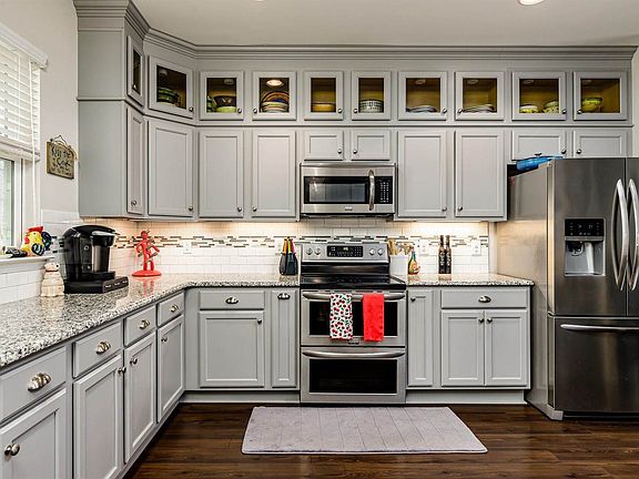 Upgrades galore! There is high-end vinyl plank flooring throughout and no carpet! Enter through the spacious foyer, flanked by the amazing kitchen and mudroom. This grand kitchen features gray cabinets, granite countertops, under cabinet lighting, USB outlets, high-end appliances, pull-out shelving, a spice rack cabinet, an entire row of glass door cabinets all around the kitchen, pantry with moveable wooden shelving and beautiful tile backsplash! The living room has a vaulted ceiling and fireplace and is the center of this split floor plan. The guest bathroom has double sinks, a tile shower and granite countertops. The spacious master bedroom features a large walk in closet and master bathroom with a tile shower, granite countertops, double sinks and a linen closet with moveable wooden
