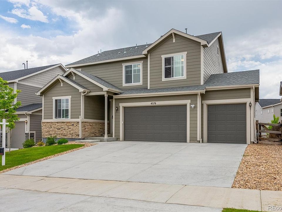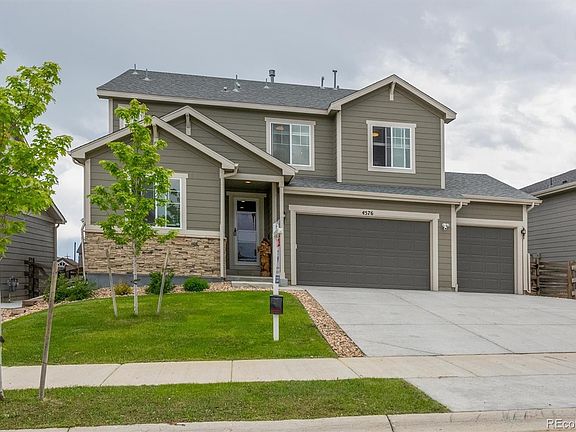 Move in ready home boasts a finished basement and sits on a cul-de-sac lot with a 3 car garage. Welcome inside to wide plank engineered hardwood flooring that extends through the main level. Gourmet kitchen features rich smoke cabinets adorned with slab granite countertops. Stainless steel appliances include double ovens, gas cooktop, microwave and dishwasher. Generous island is ideal for prep and entertaining with plenty of bar seating plus there is a large pantry for additional storage. The dining area is adjacent to the spacious great room that boasts a contemporary fireplace with sleek herringbone tile surround. Step out to the fully fenced backyard and imagine the time you'll spend on the covered patio that runs the full length of the back of the house, providing additional living space that can be enjoyed all year around. Main floor study with french doors offers space to learn and/or work from home. Upstairs you'll find 3 bedrooms plus a large loft that gives you flexibility for an additional living area, study or game room. The master suite hosts an oversized shower with separate seating area for a true spa like experience, dual vanity with slab granite countertops and tile floors. The walk-in closet is so spacious! Secondary bedrooms utilize the full hall bath and laundry is conveniently nearby. Builder finished basement comprises the sizeable rec room that is perfect for enjoying movies, games or exercising plus the fourth bedroom with walk-in closet and adjacent full bath. Note the dual zone heating and air for comfort and control, 8' doors on the main level and the gas line at the patio. The Barefoot Lakes community boasts extensive trails, open space, two beautiful lakes, rec/fitness center, pool, basketball and volleyball courts, in a great location near transit, shopping and restaurants.