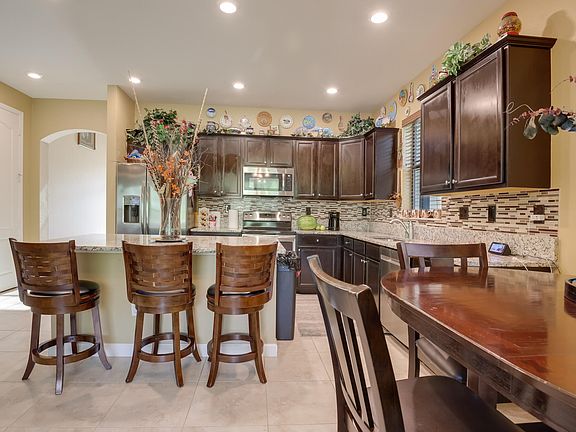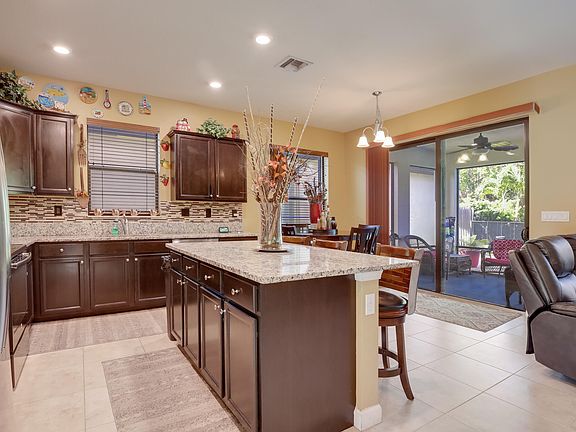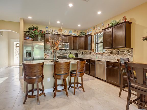 ABSOLUTELY GORGEOUS NEWER HOME BUILT IN 2015. OPEN FLOOR W/ MANY WINDOWS THAT BRING IN AN ABUNDANCE OF NATURAL LIGHT. ISLAND EAT-IN KITCHEN BOASTS WOOD CABINETRY, STAINLESS STEEL APPLIANCES W/ WASHER, DRYER & DISHWASHER LESS THAN 30 DAYS NEW, GRANITE COUNTERTOPS & GLASS TILE BACKSPLASH THAT OVERLOOK BIG FAMLY ROOM. SLIDING DOORS TAKE YOU OUT TO THE COVERED & SCREENED PATIO. OVERSIZED FULLY FENCED YARD W/ POOL & PLENTY OF DECKING TO LAYOUT. BACKS UP TO A PRESERVE FOR PRIVACY. A BEDROOM & FULL BATHROOM DOWNSTAIRS FOR GUESTS OR RELATIVES. FAUX WOOD FLOORING ON THE STAIRS & UPSTAIRS LANDING. 3 BEDROOMS UPSTAIRS ARE CARPETED FOR COMFORT. OWNERS'S SUITE IS QUITE LARGE WI/ A WALK-IN CLOSET AND BEAUTIFUL OWNER'S BATHROOM. ACCORDION SHUTTERS ON ALL WIINDOWS. THIS IS A GREAT COMMUNITY