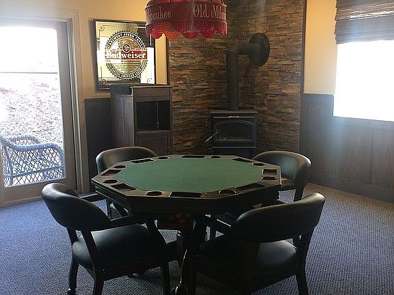 Perfect 2nd home or full time. Set up for all your entertaining needs, large deck off the game room and a full deck for enjoying the lake view, sunsets or if your an early riser the moon setting on the lake. Fenced back yard with water feature, fire pit, redwood deck leading to the game room which includes wet bar, 1/2 bath, wood burning stove, game table, pool table and pinball!!. New carpet and dining/kitchen flooring along with granite counters installed this year. HOA provides pool, exercise room, banquet room and more. There are also local private fish ponds.