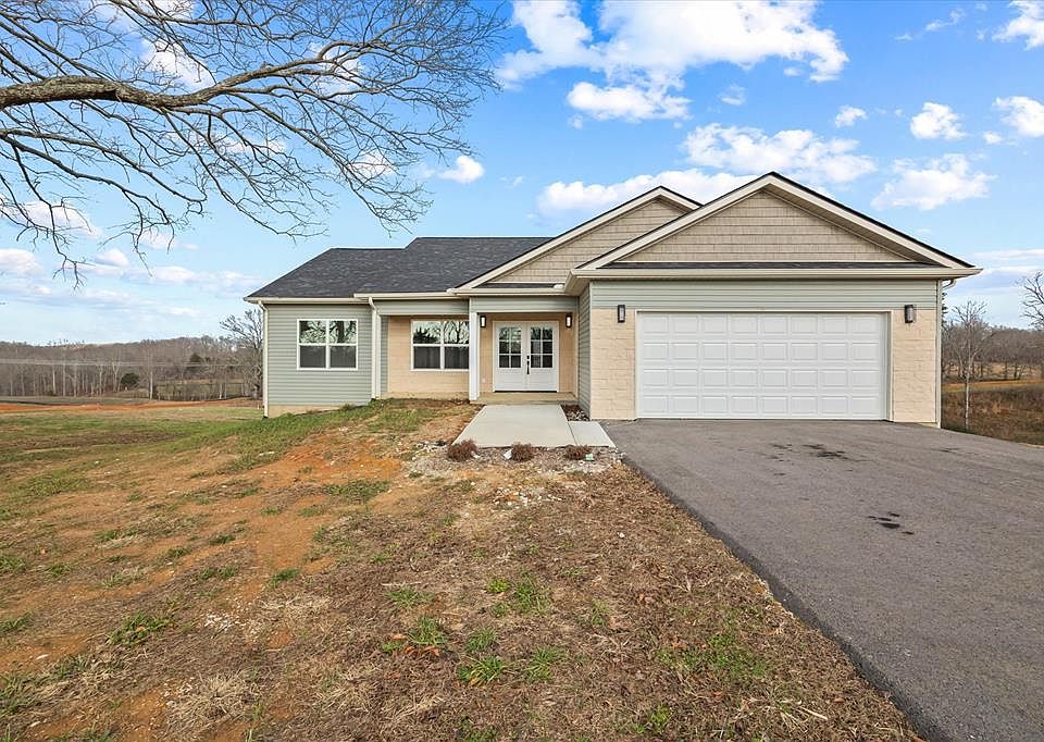 This is no average new construction. You are offered an affordable and perfect layout for 2 living quarters close to town and near Center Hill Lake. Your main level offers open concept living with vaulted ceilings, a white kitchen + quartz countertops throughout, black+gold accents and fixtures, as well as a large double front door with all the natural lighting. You also have a split floor plan with the primary suite offering custom closetry, dbl vanities, a walk in shower, and close to your laundry area, as well as your true 2 car garage. Off the kitchen is your large covered back deck ready to enjoy any season. The bsmt offers your 4th bedroom, full bathroom, another bonus room, and another spacious living area with a kitchenette. There is a 3rd full garage perfect for a gym, storage, or yard equiptment etc. There is also another back patio to enjoy. Move in ready and just minutes to town, 1hr to Nashville, and 1.5 hrs to Knoxville.