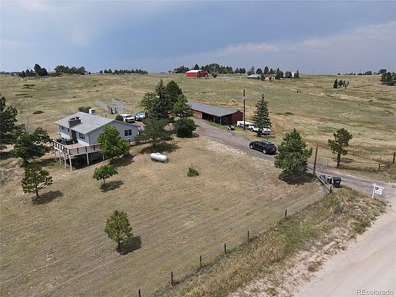 LOCATION, PRIVACY, ACREAGE just minutes away from downtown Parker and 30 minutes away from DTC! This Ranch style home has 4 bedrooms, 2 bathrooms( new carpet), with a walk out finished basement. Kitchen is spacious and opens to the family room with views and a cozy wood burning fireplace. The new separate basement entrance has an unfinished bonus room/study(or 5th bedroom) that needs your finishing touches along with a 3rd potential bathroom. Lots of space for horses, dirt bikes, and room to store your toys! Horse stable area had 5 stalls/ tack room and storage along with a second barn for more storage or separate area for grazing horses. Don't miss this opportunity to own 9.45 acres with privacy and country living and no HOA!