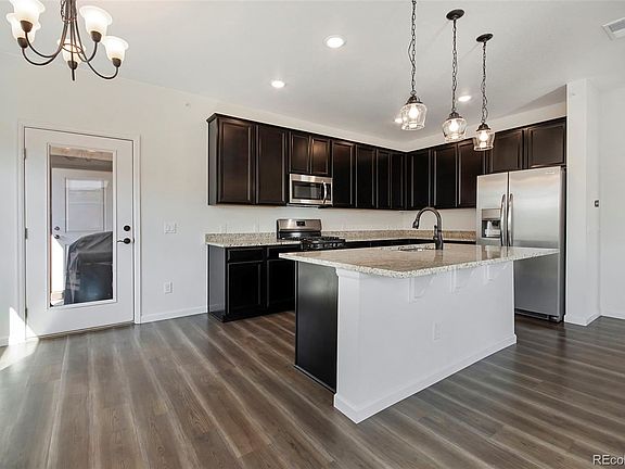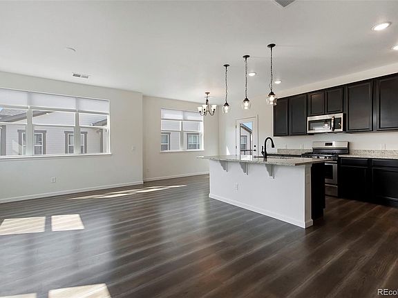 Stunning, Move-in ready, Copeland Canyon Condo. Only 1 year old! This property features a great open floor plan with 2 bedrooms and 2 bathrooms. Beautiful flooring throughout, high ceilings, and a private balcony with storage! Fantastic open kitchen with granite countertops, stainless steel appliances, and kitchen sink with a single pull faucet. Matching bronze features throughout. Large island with seating overlooking the dining area and family room. Master Suite with private bath and large walk-in closet, plus a second bedroom and full bathroom. Detached garage and one dedicated parking space. Close to C-470, dog park, miles of biking trails, Park Meadows Mall, and tons of dining!