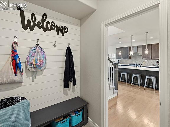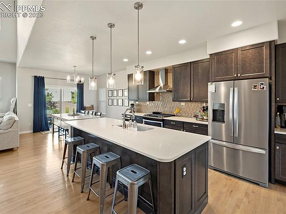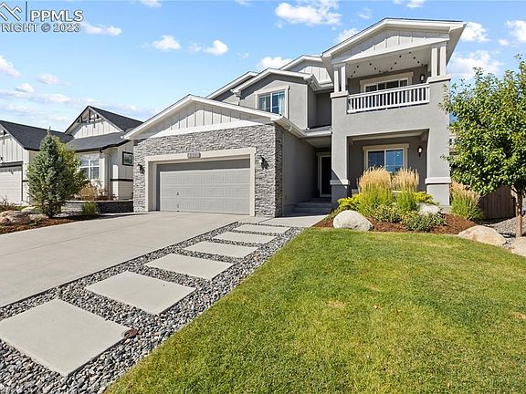 Welcome Home To This Well Maintained Two Story Home in Cordera w/ Pikes Peak Views * Spacious Open Floor Plan w/ Hardwood Floors Throughout Most of Main Level * Expansive Great Room w/ Two Story Ceilings & Gas Fireplace * Gourmet Kitchen w/ Quartz Counters, Stainless Steel Appliances, Large Island, Pantry & Eat-In Nook/Flex Space * Master Suite w/ 5-Piece Bath, Dual Closets, Soaking Tub, & Covered Balcony w/ Pikes Peak Views * Upper Level Has Three More Bedrooms, Laundry Room, & Full Bath w/ Dual Sinks * Main Level Office & Full Bath * Finished Basement Spacious Family Room, Wet Bar, Bedroom, Full Bath & Storage Room * Fenced Backyard w/ Large Patio, Putting Green, & Nicely Landscaped Yard * Covered Front Porch * Oversized Tandem 3-Car Garage w/ Hookup For Electrical Car Charger * Central A/C * Low Maintenance Stucco Exterior