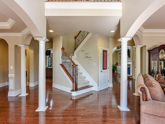 This gorgeous estate home will not disappoint! The 2-story foyer welcomes you into this open floor plan with hardwoods throughout the entire main level. The oversized dining seats 12 easily. The family room feat a stone fireplace and built-in bookshelves. The kitchen has stainless steel appliances & granite counter tops. Master suite is the perfect relaxing get away w a separate sitting area. Finished terrace level is perfect for entertaining w wet bar, media room & exercise room! Love being outdoors? You will enjoy any of the 3 covered decks w lake views.