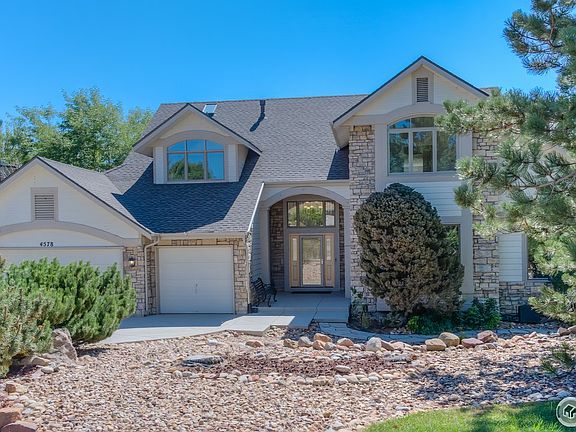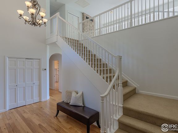 Private golf course lot overlooking the 10th fairway at Lake Valley with panoramic views of the Flatirons. Welcoming two-story with southern exposure features warm hardwoods in main living areas. Bright kitchen has maple cabinets, granite tile counters, center island & breakfast nook opening to trellised deck. Family room offers gas fireplace, wall of view windows, wet bar & soaring ceilings. Main floor office with built-in desk & cabinets. Walkout lower level rec room opens to flagstone patio. All about the unobstructed views to the south.