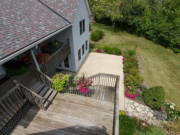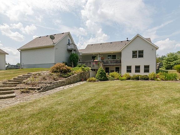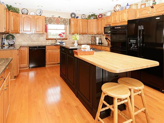 Huge wrap around front porch, gourmet country kitchen, custom oak cabinets; planning desk granite counter tops, cooking island. Kitchen walks out to covered back deck, lower deck with view of woods. First floor master. New roof in 2017. Two story garage.