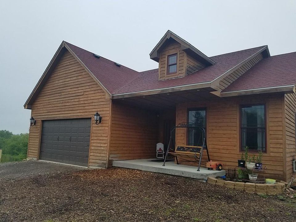 Stop! No need to look any further for your perfect new home on 3 picturesque acres! Walk in through the beautiful entry way into the cozy living room with stone fireplace then into the custom kitchen that boasts a brick island, Corian sink, granite counter tops, stainless steel appliances with Knotty Alder cabinets. Dual master suites on each end of the main level. Bamboo flooring throughout main level that takes your breath away. Tons of closet space for storage. Head downstairs to the ¾ finished basement for even more space and entertainment. Large family room with walkout to the yard. A third bedroom and a huge full bathroom. This home also is equipped with a safe room that is enforced with concrete on the perimeter and a steel door. The 3 acres make you think you are in a nature park with the panoramic views. Plenty of room to roam, play, plant a garden. You will love the fully functional greenhouse which will provide a taste of summer all year round. Fully fenced too!