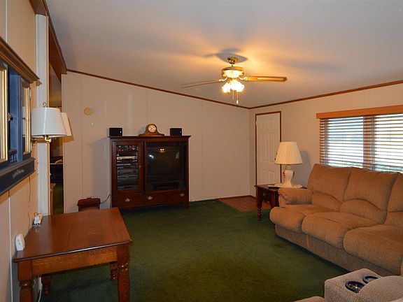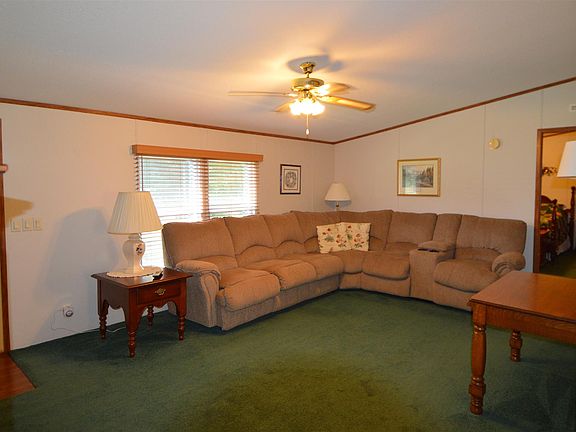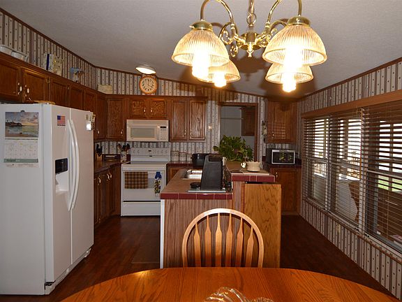 Immaculate 3BR, 2BA on permanent foundation & 5.07 Ac. Features formal LR, den/wood burning FP, remodeled MB with tile show/maple cabinets, covered porch- open and screened, handicap ramp, 20x40 det gar/workshop w/drive-thru for RV, storage bldg, carport
