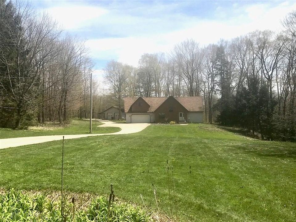 Country Living At its Best! This property & house has it All! 4 bedrooms-2.5 baths, great room with wall of windows and view of neighboring stream. Awesome 22x14 rear deck. There's also a 38x40 frame construction pole barn with workshop that has a foundation & cement block knee walls, heat, electric, water & separate 100 amp service. House sits way back from road and has a concrete driveway. 2nd floor master bedroom, hall & bath areas heated by in-floor radiant heat. Public sewer is installed!