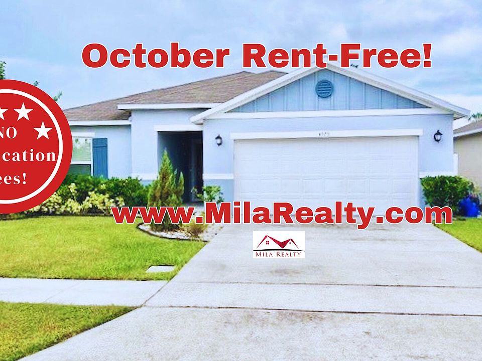 Available now! $0 application fee for pre-approved applicants + October rent free! Beautiful 4-bed, 2-bath single-family home in Gramercy Farms featuring an open-concept great room with large-format tile, recessed lighting, ceiling fan, and sliders to a covered patio. The chef's kitchen offers granite counters, white cabinetry, tile backsplash, stainless steel appliances, and an oversized island with pendant lights. The bright primary suite showcases wood-look flooring, a dual-sink vanity, walk-in shower, and a generous walk-in closet. Three additional bedrooms include ceiling fans and closets. Enjoy a fully fenced backyard with a storage shed, an epoxy-floor 2-car garage, and an interior laundry room with washer/dryer and built-in shelving. Community amenities include parks, playgrounds, walking trails, and a dog park. Conveniently located minutes to the Turnpike and close to schools, restaurants, and local shoppingspace, style, and everyday convenience in one package. Additional fee applies for monthly lawn maintenance. Inquire today to schedule your showing.