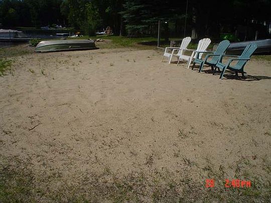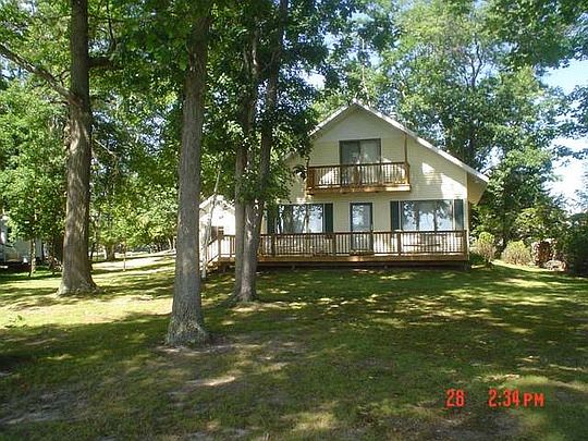 LAKE LANCER WATERFRONT HOME in SUGAR SPRINGS. This attractive 3 bedroom, 2 bath home sits on a large waterfront lot with 85 ft. of sand bottom frontage.Spectacular view of the lake with a treed island in the far distance.Quiet area of the lake with a nice sand beach is perfect for families & friends to enjoy! Upstairs bedrooms are large to accommodate many guest with a full bath.Living room has plenty of windows looking out to the water and a wood burning fireplace for those chilly nights.Home has newer siding & doors and a 1 car detached garage. Large wrap around deck for relaxing and entertaining. This home is one of few that offers a view of 2 lakes from the property.