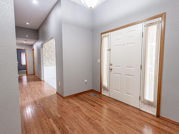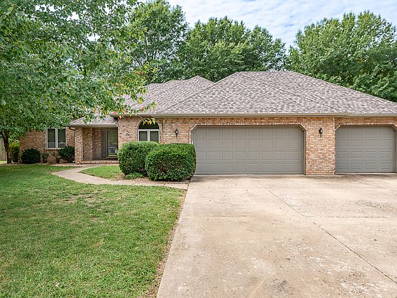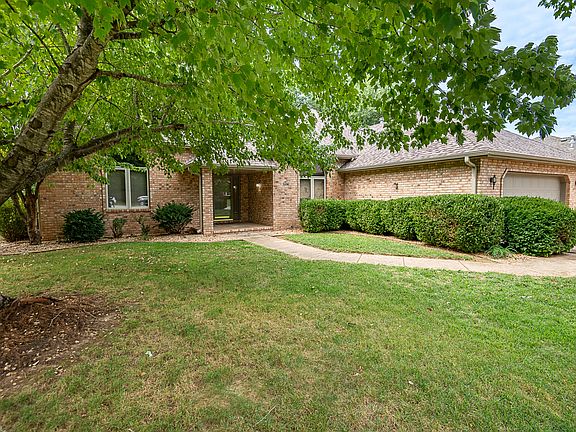 Looking for a solidly built all-brick home one level in a great neighborhood? This home located on a cul-de-sac in the established Carriage Park community is just such a place. Built in 1996, this 3 bedroom, 2 full bath has nearly 2100 sq.ft. of quality living space with true hardwood floors, casement windows, gorgeous woodwork, and even a screened patio. With a fully landscaped front yard and an extra wide driveway leading to the deep 3 car garage, the home sits back on the lot and has great curb appeal. Inside features a huge great room with tall ceilings and a gas fireplace, a large formal dining or extra living area at the front of the house, and a roomy eat-in kitchen with custom oak cabinetry including a sit-down secretary and loads of counter space. All three bedrooms are spacious with the guest bedrooms off the main hallway along with the full guest bathroom. The master suite sits at the back of the house and has access to the screened patio. It features crown molding, a tray ceiling, and a bathroom built for comfort. with tile floors, a jetted tub, double vanities, a walk-in shower, and a walk-in closet with wood shelving. The garage is great with an extra deep third bay perfect for a boat or work area. The backyard is fully fenced and well-maintained with a large shed and shade trees. The Carriage Park community features an HOA with access to a pool and basketball court along with trash service. Access to James River Expressway and Kansas Expressway is just a couple minutes to the north with shopping and restaurants also close at hand. Updates include new carpet, appliances, a newer roof, and even a water softener. Excellent Harrison/WC, Cherokee, and Kickapoo schools.