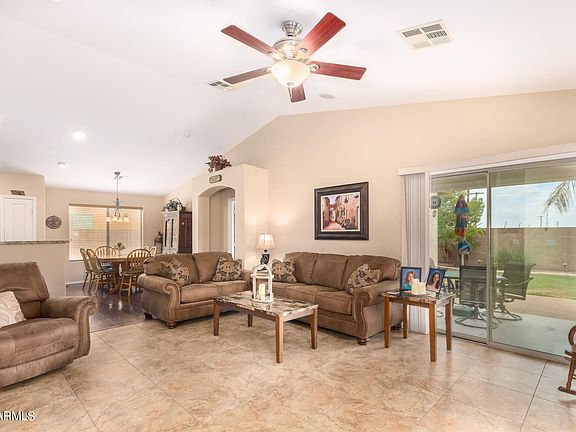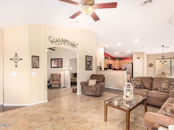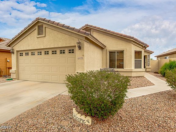 Immaculate and upgraded home in Maricopa Meadows with OWNED SOLAR!! Gorgeous kitchen with granite counters, cherry cabinets, and stainless appliances. As an added bonus it comes with the fridge, washer, dryer, water softener, and the entire HVAC system was just replaced last month!Wonderfully open floorplan with a large great room, vaulted ceilings, split master bedroom, and a den with a closet that could easily become a 4th bedroom. The backyard has meticulously maintained landscape that shows pride of ownership. Private lot with only 1-story homes on either side and no neighbors behind, providing mountain views The 7 KW solar panel system cost $21,000 and will save you thousands of dollars; the average electric bill is only $71/month!!! Come see this amazing home before it's gone!