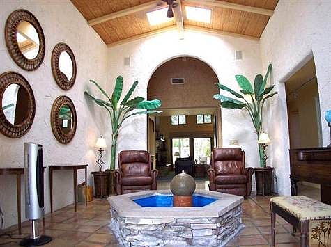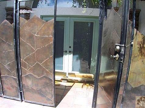Are you looking for a unique mid century modern feel as well as a unique location with only neighbors on one side? Check out this 3 bedroom, 2 bath home with a private pool and spa in south Palm Desert. The entry way into the home is something like you have never seen before. You will be greeted by the trickling of a soothing fountain and large vaulted ceilings in this welcoming area. The vaulted wood ceilings throughout the home give it a warm and comfortable feel. The two sided fireplace that reaches to the ceiling can be viewed in the living room as well as the dining area. You can't beat the privacy of this home's location. Check out the aerial view and how this home is strategically placed. The master bedroom is very spacious and the walk-in-closet is huge. The covered patio, private pool and spa has magnificent mountain views and provides a back yard for your entertainment pleasure. If you are looking for a great school, it only minutes away from Washington Carter School.