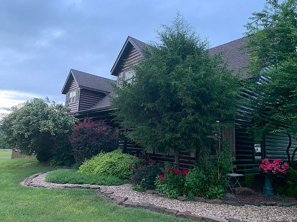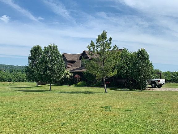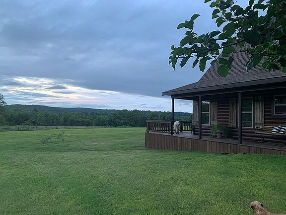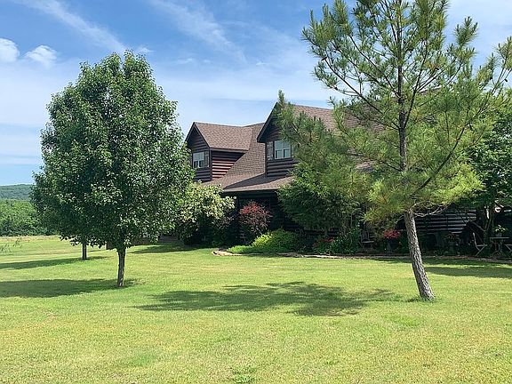 Log cabin Farmhouse nestled in secluded wooded hills with privacy and spectacular views! Wraparound porches, 3/4 bedrooms, 3/4 living areas, dining room, central vacuum, walkin closet with washer/dryer in master bedroom, two central heat/air units, two water heaters, 10 miles from Brushy Lake, 10 miles from Kerr Lake, 22 miles from Tenkiller lake. Paved roads to drive, 6 miles from I-40. John Deere Tractor, Zero turn mower, Kawasaki Mule all can be purchased separately with home.
