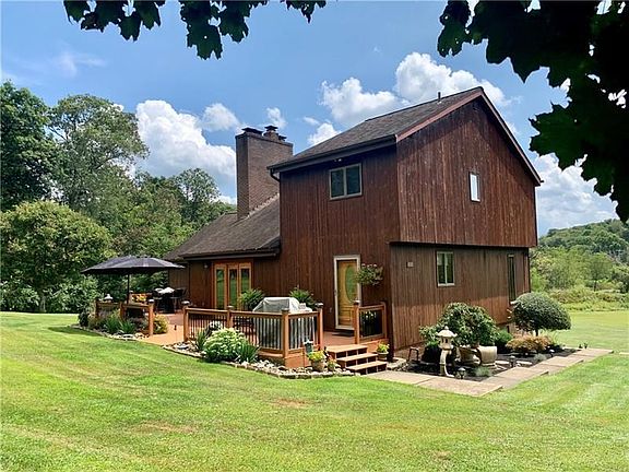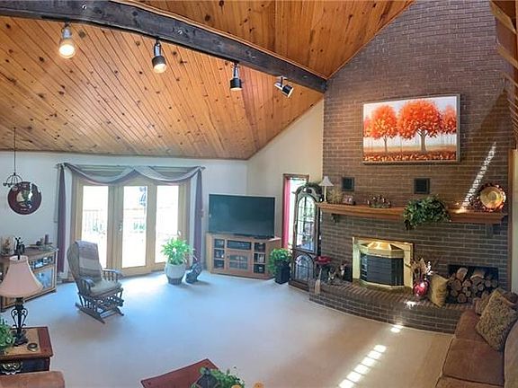 This custom built brick & cedar home on 12 + acres has much to offer! With modern kitchen complete with solid surface counter tops, formal dining room, and great room complete with cathedral ceiling & fireplace. French doors lead onto the spacious rear deck, and a covered front porch , perfect to swing and enjoy pastoral view. A main level master suite boasts a full bath, WIC & an additional fireplace. Upstairs you will find 2 additional BR's, bonus room, walk out attic, along with a full bath featuring Italian ceramic tile & jet spray tub. The level offers a walk out basement with finished game room, an additional office/BR, storage room, and just outside a small patio. The laundry/utility room allows additional space for storage or a work bench. OGMs to convey along with any royalties the seller receives. BONUS a 2 BR apartment over the 2 car garage works great as income, guest house, or in-law accommodations. A concrete driveway allows for lots of additional parking.