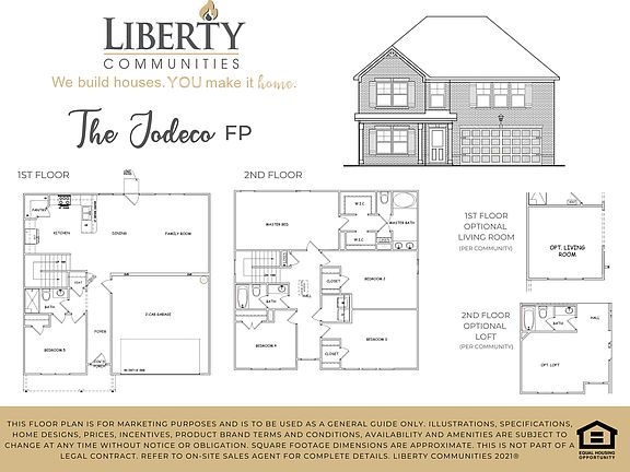 The Jodeco FP is a new, open concept plan with up to 5 bedrooms, 3 baths.. The master suite and secondary bedrooms are located on the 2nd level. The main floor is thoughtfully arranged with a spacious kitchen offering views to the dining and living area. A bedroom and full bath are also located on the main floor. *Home information, including pricing, included features and availability are subject to change prior to sale without notice or obligation. Square footage dimensions are approximate. Sample elevation shown.