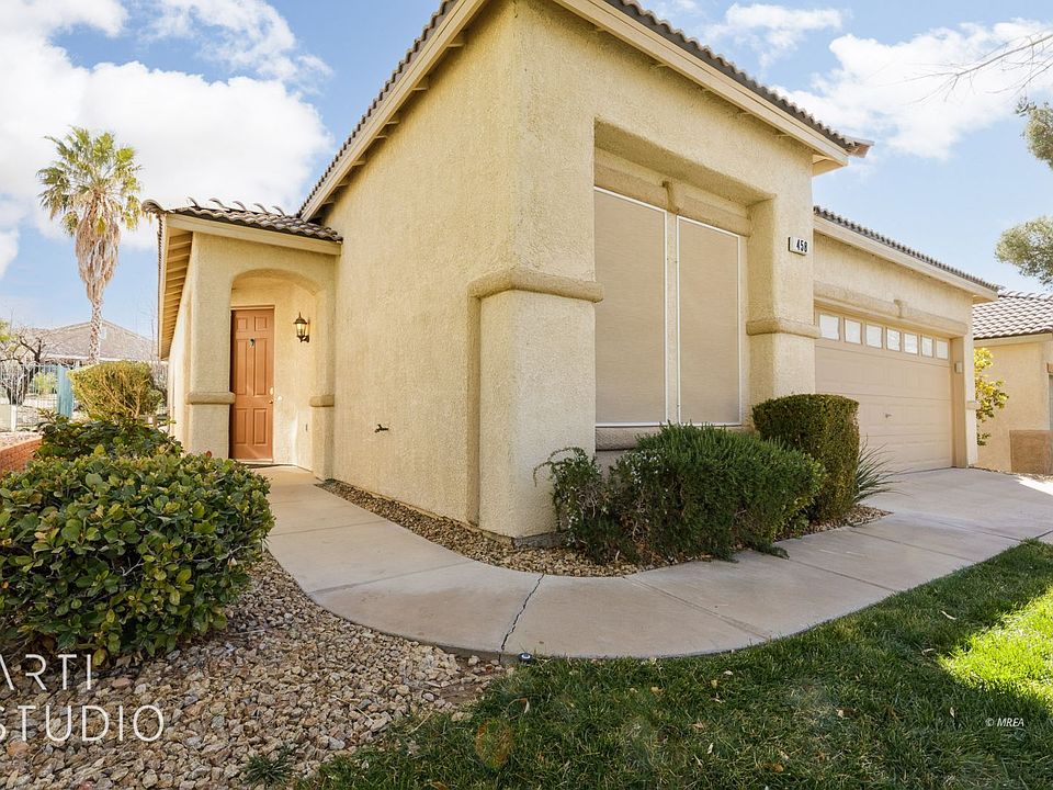 Single Family Residence is located in Sedona subdivision. 2 bedrooms plus den/or office, 2 bathrooms, and a 2 car garage has a wonderful floor plan. The kitchen has a breakfast bar and pantry to enhance the livability of this beautiful home. Large Master Bathroom with garden bathtub, double sinks, and shower. Let's not forget the large master bedroom closet. Recently placed solar screens on all windows. The low HOA dues include front yard maintenance (grass and trees). The backyard and side yards are on an auto drip system. They also include membership in the Mesquite Vistas Sports Club which includes a pool, hot tub, workout facility along with tennis, pickleball, and basketball courts---truly a resort-like facility.