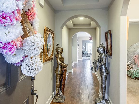 Painted brick Tudor on premium lot across from amenities & near both lakes! Nearly 80k in upgrades! This is the home everyone admires! Upgraded 4th bedroom (bonus) w/ 3rd bath. 3 bedrooms down including the owner's suite with accent wall, trey ceiling, luxury all tile bath w/ seamless shower, bench, rain shower head, separate jetted tub & huge walk-in closet. Bronze hardware, all counters granite, & barn insulated garage doors. Across from the farm stand, pool, splash pad, gym, & orchard.
