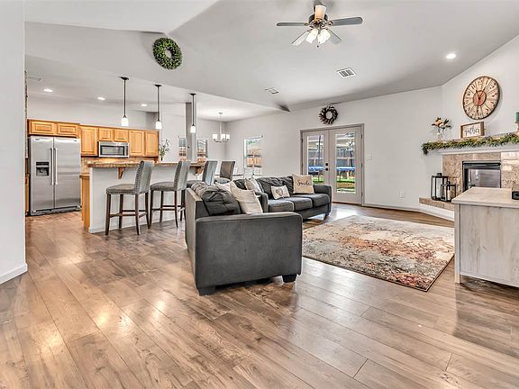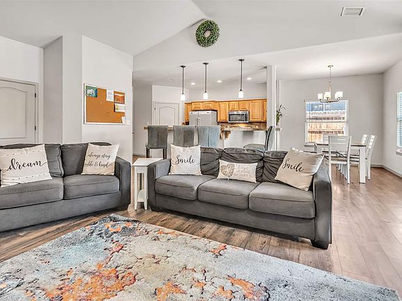 Beautifully updated home in Chatfield Subdivision with vaulted ceilings, fresh paint, and an open floor plan. The kitchen/dining area will be the perfect place to entertain your family and friends with the open floor concept, a tall bar area with a place for bar stools, stainless steel appliances, and granite tile countertops. Lock yourself away for quiet time in the spacious Master Suite that includes a 5 piece Master Bathroom with double sinks, a garden tub and a walk in closet. Fully landscaped yard with timed sprinklers, mature landscaping, plus a play set and trampoline that will stay with the property.
