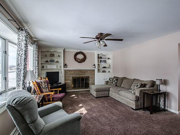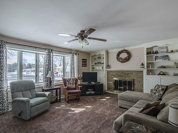 Curb appeal galore in this move in ready 4 bedroom, 1.5 story brick and vinyl home. Newer carpet throughout the downstairs and upstairs. Easy access to the bi level deck through the dining room-ideal for entertaining! Large picture window in the living room adds great natural light to accent the charming builtins surrounding the cozy fireplace.Sunny fully applianced kitchen. The basement was B Dry in 2008 and partially finished to make a spacious second living space with it's own fireplace. Convenient first floor master near a full bath. Additional notable details include: roof in '13, furnace in '08, many newer light fixtures and updated door knobs. Don't wait!