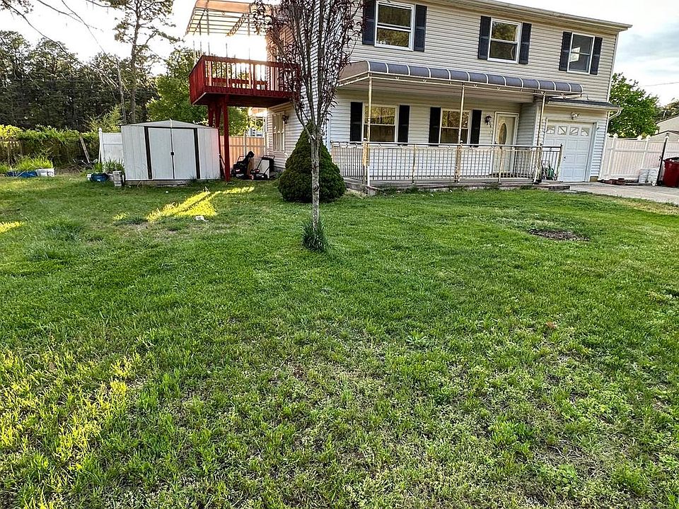 Lots of living space for a growing family or plenty of company! Pull up to a large front yard off a quiet road nestled in the heart of Bayville. Walk up onto the covered front porch where you are greeted by marble floors throughout first floor with a newer kitchen area that opens to the dining and living room. Newer full bathroom downstairs, washer/dryer downstairs and a large garage. Walk up beautiful hardwood stairs to 4 spacious bedrooms AND a flex room that can convert to a 5th bedroom, hardwood floors throughout. One full newer bathroom upstairs as well. One bedroom has a large covered balcony, perfect for sunny days. Large covered deck in the back with more patio space to entertain. Plus, 2 sheds for additional storage. With all this space, the possibilities are endless! Brand new well water system.