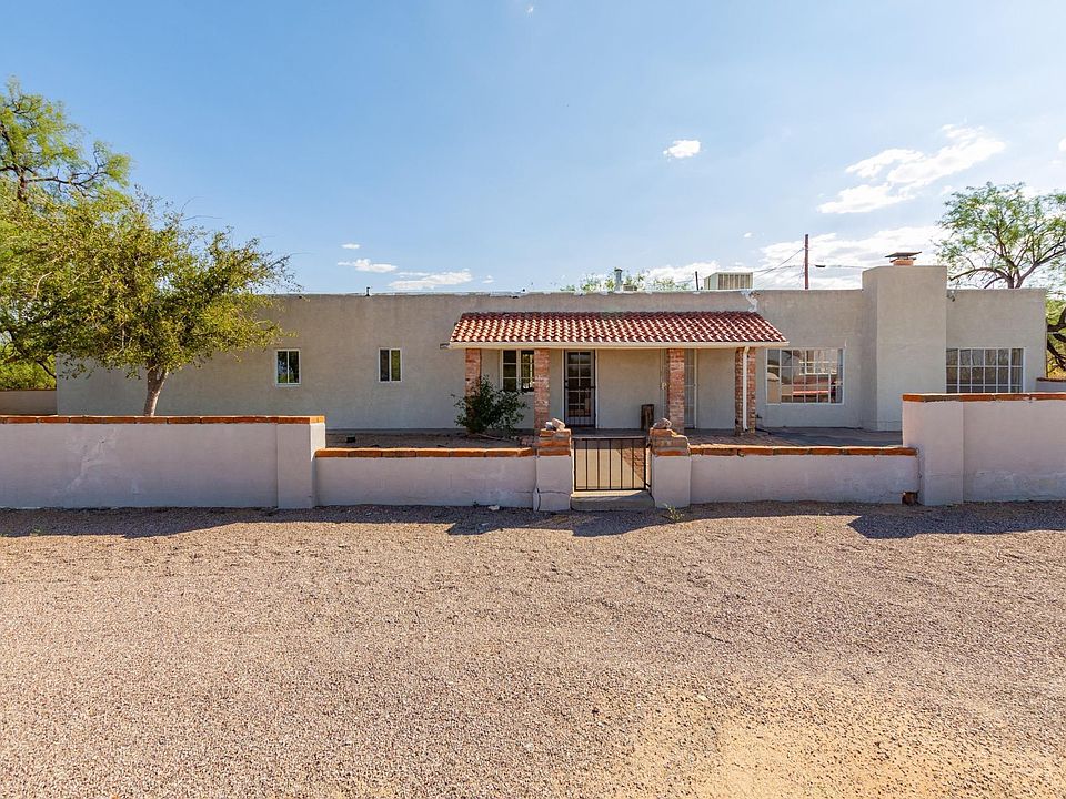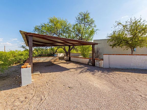 This hidden gem in the heart of Benson sits nestled on 1.74 acres with old mesquites, pretty mountain views and extensive privacy! The property has a beautifully built steel carport and a 2/1 main home that is complimented by a 1/1 guest quarters and multiple storage sheds. The main home features an inviting walled courtyard, updated kitchen cabinets, a large, naturally lit living room, a stout brick fireplace, and a formal dining area. The classically updated bathroom features beautiful white and blue tiles throughout and large wrap around mirrors. The property's 10 undeveloped lots offer immense opportunity as they contain buildable land and elevated lots with breathtaking views of the San Pedro Valley!