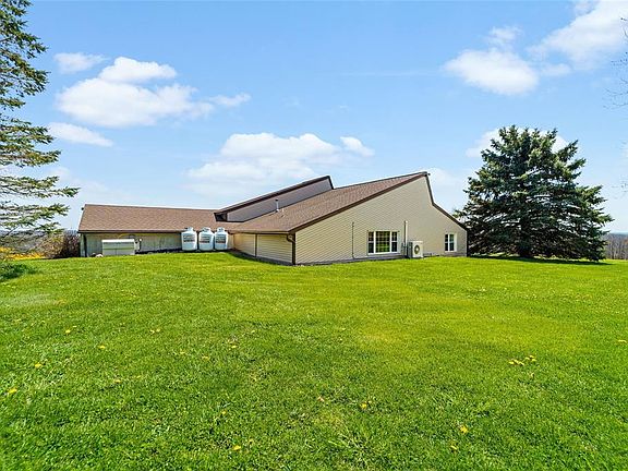 Enjoy panoramic million dollar views! This home is set on 36 acres on top of a hill. Bordering 120 acres of state forest. Well maintained & updated. All the privacy you desire as you are up a 1/4 mile driveway. Open floorplan. Vaulted ceilings, skylights, a plethora of windows to allow the natural light to shine in! Custom kitchen with quartz countertops. The loft is a nice home office space with rain sensing skylights. Bonus room, plenty of storage, walk-in closet space. Master bdrm opens to the tiled indoor hot tub room. Relax in the hot tub & marvel at the views! Trex deck spans 55 ft and is 10 ft wide with entrances to the bedrooms. 24x50 Morton bldg is great for your livestock or your toys & features water and electric. Coleman automatic whole home generator. Mitsubishi split ductless AC/heat. Thermo electric heat. Wood pellet stove w/option to connect to propane. Bio-kinetic wastewater treatment system. 3 acres of invisible dog fence. Ithaca Binghamton and Owego are close!