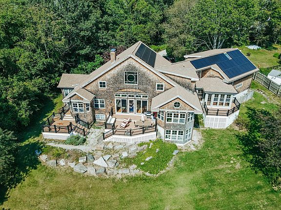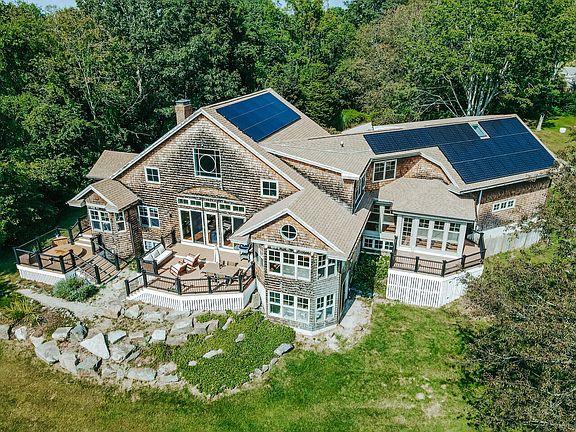 Amazing opportunity to call this waterfront, custom property with nearly 5,000 square feet of living space, home. Located on the tidal waters of Crocket's Brook, which leads into Spruce Creek and eventually opens into the Piscataqua River, this home features a massive stone fireplaced living room with cathedral ceilings which looks out into the fields and water below. The large dining area shares that same view and opens into the spacious kitchen, which features high end stainless appliances and exceptionally designed finishes. First floor primary bedroom, ensuite bathroom and home office occupy the west wing of the house. Three more spacious bedrooms, a bathroom, and a family/sitting room comprise the second floor. The finished lower level brings this property to the next level. Here you'll find a home theater with theater style seating for seven, a large recreation room that is plumbed and ready for a wet bar area, and separate wine cellar. There is also an additional full bathroom as well as a family room. Recent updates include hickory flooring on all three levels, carpeting replaced in three upper bedrooms, new roof & solar panels (owned) in 2020, new heating/cooling system & all decking replaced with composite in 2021, and copper gutters in 2022. Showings to begin on Monday, September 11, 2023.