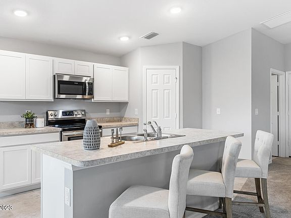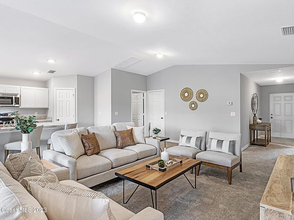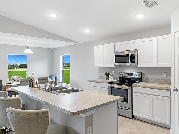 NEW CONSTRUCTION WITH WARRANTY! The Palm delivers 1,550 sq ft of living space featuring a large Great Room under a vaulted ceiling and the private covered lanai just outside the sliding glass doors, perfect for indoor-outdoor entertaining. At the heart of this open floor plan, the kitchen boasts a freestanding island and walk-in pantry next to the dining room with a tray ceiling that's filled with natural light. The primary suite features a walk-in closet and bathroom with a dual-sink vanity, shower, and extra storage in the linen closet. This home boasts hurricane-impact windows and doors, designer cabinetry in the kitchen and bathrooms, a stainless steel range, microwave, and dishwasher, and an attached two-car garage. Pictures, renderings, & virtual tour are of similar home & are used for display purposes only. $10k FLEX CASH available for using preferred lender and title company. Estimated delivery April 2024.