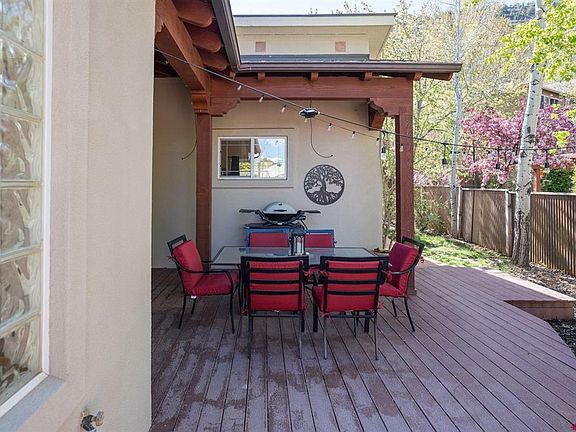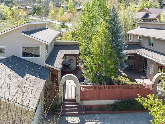 Discover this charming 3-bedroom, 2.5-bathroom home in the coveted Skyridge community. Situated across from Skyridge Park and tennis courts, outdoor enthusiasts will relish the easy access to recreational amenities. Step through the arched entryway into a secluded patio enveloped by mature aspens, offering a serene escape for outdoor gatherings. Inside, the open living and dining areas seamlessly flow, providing an inviting space for entertaining. The updated kitchen boasts modern appliances and tile floors, combining style with functionality. Dual master suites, one on each level, offer flexibility and privacy, with the downstairs suite providing direct access to the backyard. Upstairs, the main master suite features breathtaking mountain views and ample space for a sitting area or office. One additional bedroom provides versatility for guests or family members. With a two-car garage and convenient access to hiking and biking trails, this home embodies the perfect blend of comfort, convenience, and natural beauty. Take advantage of the opportunity to call this Skyridge gem your own!