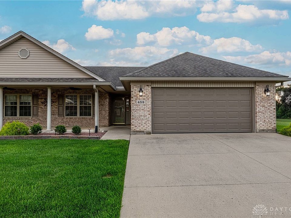 Welcome to the highly sought-after Reserves of Xenia! This spacious all brick condominium offers an open-concept floor plan designed for comfort and convenience. Step inside to a bright and airy great room with soaring cathedral ceilings, seamlessly connected to the dining area—perfect for both everyday living and entertaining.
