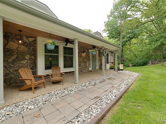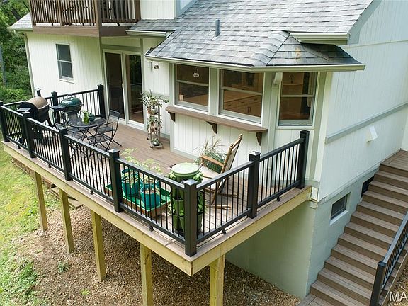 Welcome to this perfect home nestled in Missouri Wine Country surrounded by nearly 2.5 acres of wooded privacy. You are welcomed into this inviting floorplan through the 2 story entry foyer. Hardwood floors carry through much of the main level. Front office & half bath off the entry. Family room features wood beamed ceiling, cozy stone surround wood burning fireplace. Large open style kitchen offers expansive white Corian countertops & white shaker cabinetry. Main level primary suite has been recently updated w/ spa like bath including beautifully tiled shower, designer vanity, & spacious closet. Head out to the new composite deck overlooking the private lot, a perfect spot to enjoy your morning coffee. Large main floor laundry/mud room. Head upstairs to find two expansive bedrooms w/ fourth bedroom in the middle featuring a Juliet balcony plus another full bath. Walk-out lower level offers additional finished space w/ large open rec room, another half bath & plenty of storage space. Additional Rooms: Mud Room