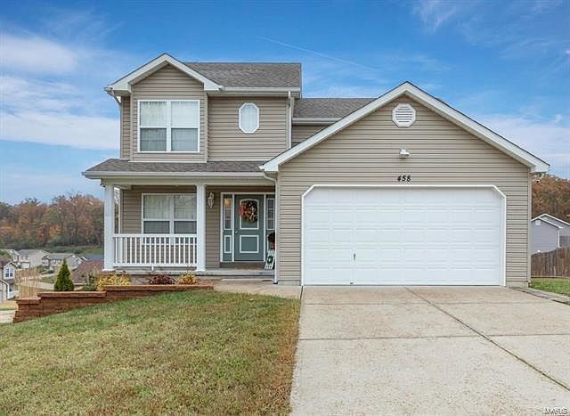 HOME SWEET HOME!! This charming, well maintained, two-story home sits on a gorgeous corner lot in Pevely Heights Subdivision. This home offers 3 bedrooms, 2.5 Baths, beautiful new laminate flooring, a HUGE kitchen, main floor laundry, 2 car garage, and plenty of space!! The large Master bedroom features coffered ceilings, his and hers closets, and a master bath. The Kitchen has tons of cabinet space, a breakfast room, and access to the cozy back deck. Enjoy your evenings sitting under the covered front porch or down at the subdivisions small fishing lake. The location of this home is perfect, just minutes from I55, putting you close to plenty of restaurants, stores and entertainment. This home is truly HOME SWEET HOME!!