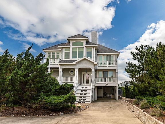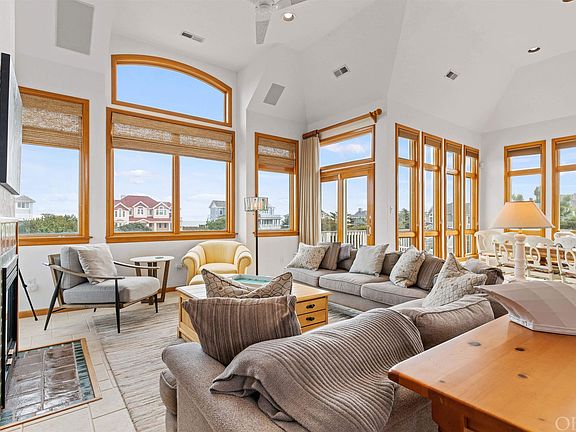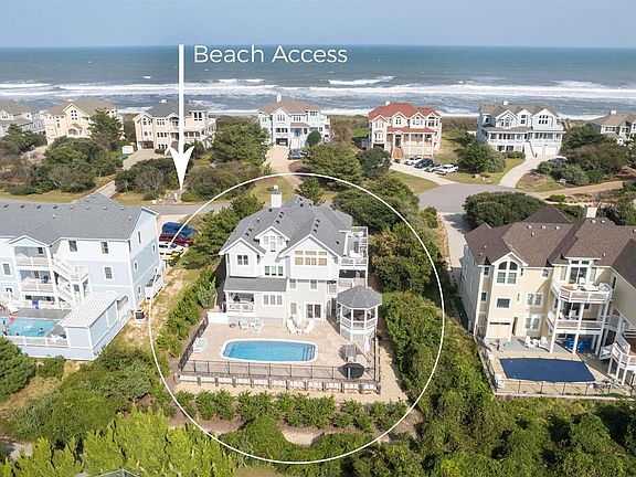 Custom built and impeccably well-maintained semi-oceanfront home situated on a quiet cul-de-sac in the sought after Pine Island community of Corolla. Boasting a well thought out floor plan, ocean views, ample home and community amenities, and a professionally appointed interior, this is one you don't want to miss! With major improvements made since purchase in 2000, and used as a second home since, this home shows like new. On the top floor a spacious open concept living room w/ gas fireplace, comprehensive audio & visual system with surround sound, ocean views, direct deck access, and a half bath serves as the perfect space to relax and unwind with friends & family. A gourmet kitchen boasting granite countertops, stainless steel appliances, a wine fridge, viking range, dual dishwashers and sinks, and both island & dining seating, is a chef's dream come true! Sneak away to the upstairs ships watch to play a game of cards or relax with a good book. Enjoy time soaking up the sunshine on the surrounding trex decks boasting ocean views and both dining and lounge seating. The top floor primary en suite offers a privacy deck, bathroom w/ custom tiled shower, plantation shutters, and a dual vanity, as well as a walk-in closet. A grand foyer entry welcomes you in on the second floor, leading to a sitting area to relax and unwind after time spent on the beach. This floor includes two en suites, and a spacious bedroom, all with direct deck access, as well as a full bath, and covered decks surrounding. Make your way down to the at home office with a writers desk and sofa, along with a privacy deck overlooking the private pool. The first floor boasts a game room with wet bar, surround sound system, and wraparound seating, a bedroom w/ walk in closet, and full bath. Enjoy the gorgeous private pool (built in 2021), an elevated and covered spa, outdoor shower, electric car charger, exterior storage space, and convenience to the beach access, and Pine Island community amenities within walking distance.