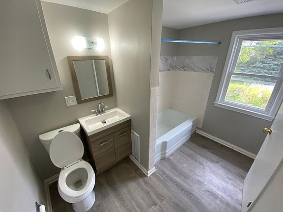 Just remodeled house with brand new kitchen and granite countertops, new windows , new separate heating and a/c ,new appliances and new washer and dryer. One car garage Tenant pays all utilities
