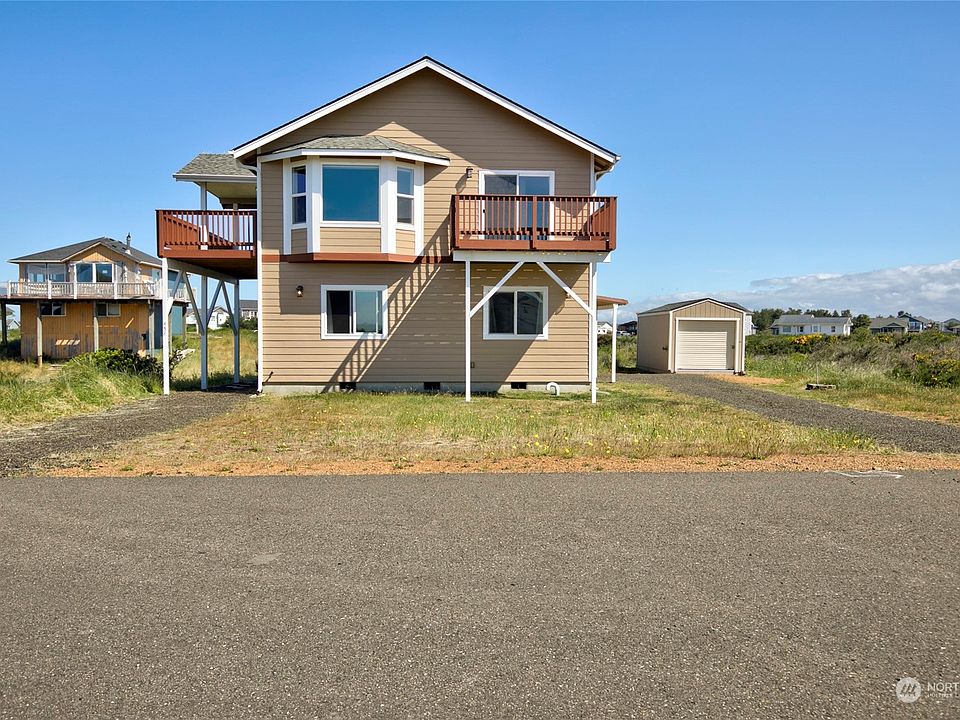 *DETACHED 24' x 24' GARAGE/SHOP INCLUDED IN LISTING PRICE - to be completed August '24* Enjoy all the wonder of Beach Living at it's finest! Panoramic views of the Pacific Ocean, North Jetty & shipping channel allow for perfect sunny summer days on the covered balcony & winter storm watching from the cozy living room. Downstairs features large Family Room, 2 bedrooms & bathroom. Upstairs features the Great Room w/ an abundance of windows to enjoy the views, kitchen w/ eating space, SS appliances including propane range & pantry, full guest bathroom & Primary Suite w/ private balcony, walk-in closet & full bathroom. Extras: Storage shed, 400 amp service to house, RV sewer dump, plumbing in Family Room (kitchenette, wet-bar, etc.). Must see!