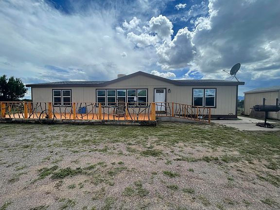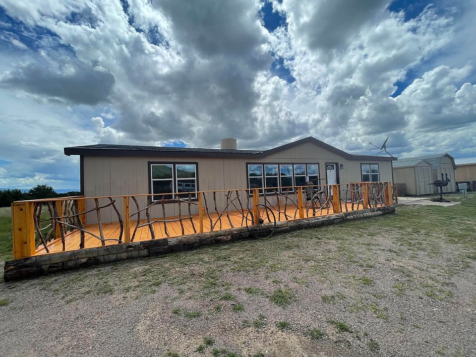 Come and get away from it all at the foot hills of Sugarloaf mountains. 3 bedrooms/2 full baths. Carpet, Laminate & vinyl flooring. New furnace & hot water heater. Evaporative Cooler. Move in ready! Manufactured double wide with a permanent foundation on 5.82 Acres. Four storage sheds with one integrated into a well house onto a cozy covered patio. New 10X37 Rustic Deck with wheel chair ramp. Fenced back yard for your dogs & a doggie door going into a 12x13 sunroom on the south side. $60 annually HOA. 455 deep well that pumps 5 gallons per minute. Upgraded septic. Hughesnet Internet & TV available. Cell phone service. Property has been surveyed. Enjoy our dark starry skies & breathtaking sunsets. Mild winters & cool summers. Wild game in the area which includes elk, deer & antelope.