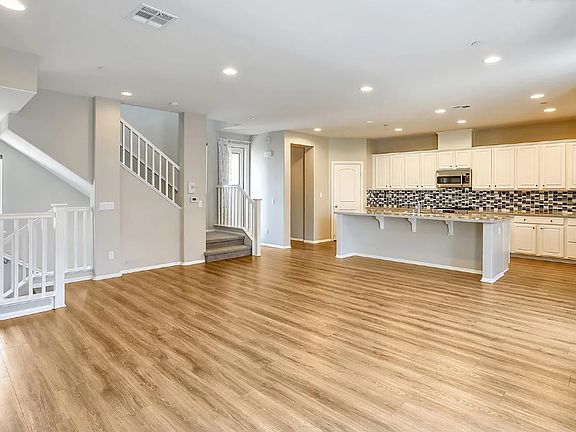 3 story townhome. Light and bright open floor plan with hardwood floors throughout. Open-concept kitchen complete with a center island, granite countertops paired with tiled backsplash, endless cabinetry, and stainless steel appliances. Private balcony and attached 2-car garage with extra storage space. The den on the lower floor has patio access. All but one bedrooms are located upstairs. Primary bathroom features separate soaking tub and glass-enclosed shower stall, plus an extra large closet. A third bedroom is located on the lower floor. This home is in a serene neighborhood! Enjoy the amenities such as community BBQ and well-maintained grounds. Easy access to parks, restaurants, shopping, and schools! Ready for immediate move in. No smoking please. Well behaved pet will be considered with increased deposit.