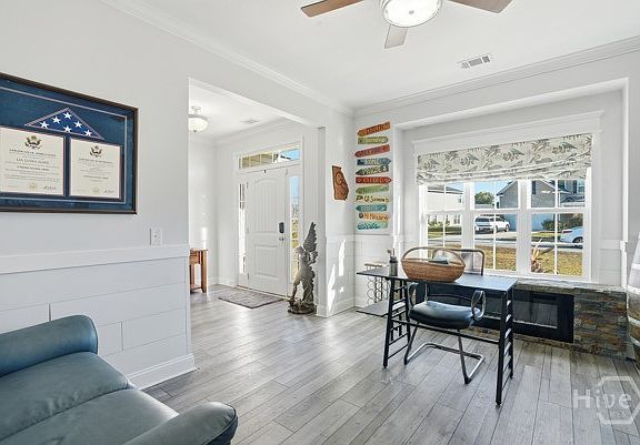 Welcome to Dunham Marsh! Great community that features resort style beach entry saltwater pool, clubhouse, fitness area, picnic area w/ fireplace & grill and community greenspace areas sprinkled throughout. All three schools, Meeks Elementary, RH Middle and RH High within 5 miles of property. You will love this property, foyer entry with study/office to the left as you walk in. The kitchen, dining and living area are an open floor plan. With a bank of windows overlooking the covered back screened porch, past that is a fire pit w-sitting area, fenced backyard backing to woods. There are four spacious bedrooms upstairs and one main level bedroom. Three full Baths, two up and one main level. Water purification and softener system. Easy commute using any one of the three I-95 exits.