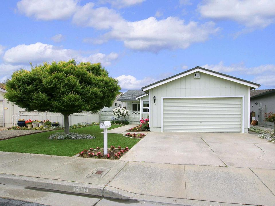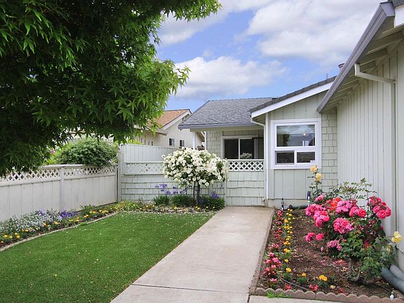 Attractive rose lined Adult Village 55+ home which backs up to the organic field. Enter thru the courtyard patio to the freshly painted interior. 2 bedrooms, 2 baths with extra den which overlooks front patio. Living room includes carpet, Mendota full view gas fireplace insert, dual pane windows and sliders. Solar blinds in living and dining area. newer appliances in kitchen with refinished cabinets, pergo floors and breakfast bar. Newer tile in bathroom and tile floors. Master bedroom with walk-in closet, bath and slider that leads to the backyard with view of the hills. Newer composition roof, and security system installed. Both front & backyards have been replaced with high end artificial turf, French drains installed and auto drip system for flower beds. Attached 2-car garage, low annual Bay Village HOA fees. Very well cared for home that provides a great opportunity for senior living in Santa Cruz County.