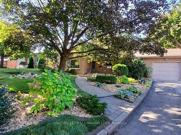 Welcome to 458 Three Valleys Cres, a charming brick bungalow with over 2,500 sq ft of finished living space nestled on a pie-shaped lot in a peaceful cul-de-sac. As you step inside, you're greeted by a foyer with a front hall closet, leading to a formal living room with an oversized front window and a wood-burning fireplace perfect for cozy evenings. The kitchen offers ample storage with elegant oak cabinetry and flows seamlessly into a stunning extension. This space features a gas fireplace, brings in abundant natural light through numerous windows, and offers access to the tranquil backyard, where you can enjoy the beauty of the surrounding trees and birds. The main floor includes three bedrooms, all with hardwood flooring, an office area and a well-appointed 4-piece bathroom with plenty of storage. The expansive basement provides versatile open space, featuring another gas fireplace ideal for a recreation room or additional living area. Additionally, you'll find a convenient storage room, gym, laundry facilities, and an extra 3-piece bathroom, offering plenty of room for everyone. The property also includes a large driveway with parking for up to five vehicles, along with a single-car garage. Outside, discover a peaceful backyard oasis, complete with a serene path leading to a cozy seating area perfect for relaxation or entertaining. Don't miss this incredible opportunity - book your showing today! Some photos are virtually staged.