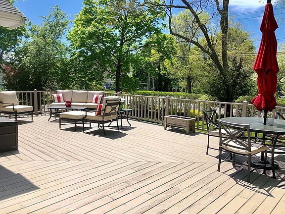 This contemporary home is simply spectacular, with many updates and improvements, a first rate location and framed by a beautifully landscaped yard with privacy hedges. An open floor plan begins with a smashing cook's kitchen with a gas stove, tile flooring, recessed lighting and a granite topped island with decorative pendant lighting. The adjacent living room and dining room have gleaming wood floors, a newer bay window, privacy shutters and direct access to an entertainment sized deck overlooking park-like grounds. Well proportioned bedrooms, 2 smartly updated baths and a fabulous family room with beamed ceiling, serving bar with built-in refrigerator, and a wood burning FP add up to perfection. Most everything has been done here starting with a beautifully crafted front walkway, a freshly painted interior, refinished wood flooring, the addition of central air conditioning, and a new LL level entry with bench seating and a large storage pantry. Absolutely the best value in town!