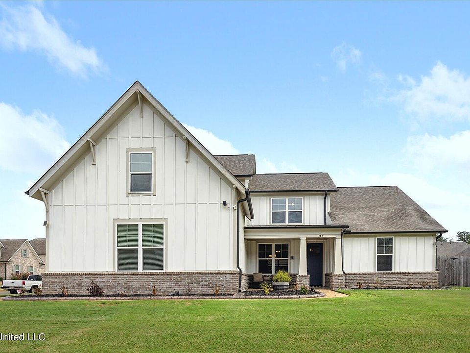 Back on market. Buyer financing failed and seller ready to sell!!! Welcome to this better-than-new 4-bedroom (2 down), 3.5-bathroom home in Hernando. Built in 2021, this home features a desirable open floor plan with dining room, living room with fireplace, and huge bonus room. You'll love the hardwood floors that run throughout the main living areas. The gourmet kitchen includes white cabinetry, a large island, granite countertops, backsplash, double oven, 5-burner gas stove, oversized pantry with wood shelves, and more. The main floor features a spacious primary suite with luxurious bathroom including double sinks, a soaker tub, king spa shower, and killer closet. A second bedroom on this level serves as a guest suite, providing privacy and comfort. Upstairs, find two additional bedrooms, a full bath, and a versatile bonus space. The home offers great storage space with hall storage lockers, large closets, laundry room with storage, garage with overhead storage racks and an extended driveway. The outdoor area includes irrigation, quality concrete flower bed edging, a level backyard with wood fence and patio, and covered front porch- perfect for relaxation or entertaining. Situated on a corner lot in a quiet cove, this home offers easy access to Hernando Square, highways, and the interstate. Extra bonus- kitchen refrigerator can stay!